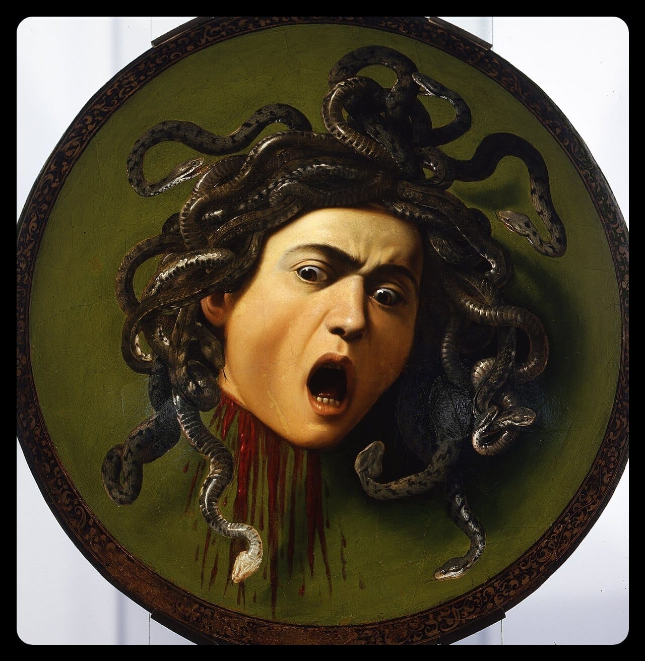 It's no surprise that Armida's painting is displayed in the same gallery wing as Caravaggio's Medusa. The wide-eyed, open-mouthed, decapitated head mounted on the shield of Thesus was not the monstrosity of legend but a victim of the whims of a selfish god. Medusa – a modern symbol for trauma survivors, tattooed on so much skin. Her face in Caravaggio's work epitomises not the hideous cry of a monster but that of a woman who has seen and felt too much.